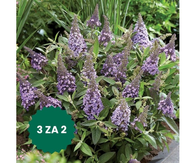 (Buddleja davidii). Wyróżnia się niewielkim, kompaktowym wzrostem. Ze względu na długie, obfite kwitnienie, piękną kolorystykę oraz cudowny zapach warto ją posadzić w wyeksponowanym miejscu. Okazałe, w lawendowym odcieniu kwiatostany działają jak magnes i przyciągają liczne pszczoły i motyle. Młode rośliny warto okryć na zimę.