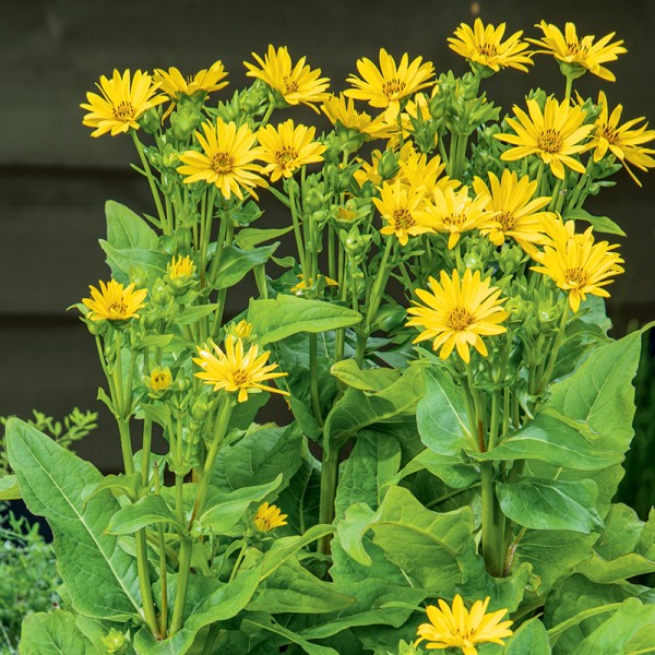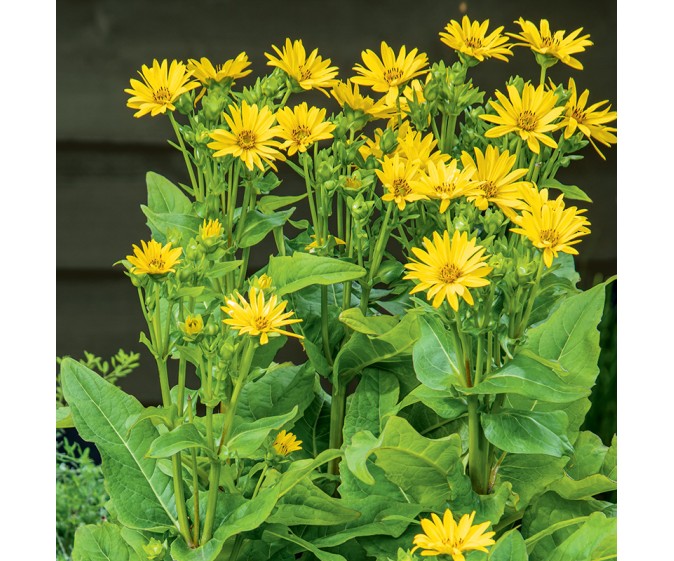 Jest olbrzymi, imponujący, bardzo pożyteczny. Rożnik przerośnięty (Silphium perfoliatum) kwitnie długo, wybitnie miododajne kwiaty zwabiają pszczoły i owady zapylające. Woda zbierająca się w nasadach liści jest wodopojem dla ptaków, a nasiona przysmakiem dla sikorek. Kępa wysoka nawet na 2,5 m świetnie maskuje nieatrakcyjne miejsca w ogrodzie. Produkuje dużo energetycznej biomasy.