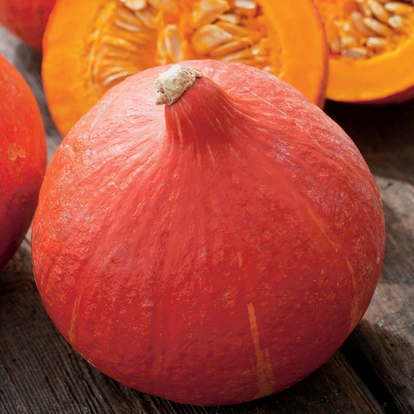 Dynia Uchiki Kuri to jedna z najchętniej wybieranych odmian dyni, ceniona za intensywny kolor i smak miąższu. Owoce mają czerwono-pomarańczową skórkę oraz twardy, ciemnożółty miąższ o wyrazistym, słodkawym smaku, który nie wymaga obierania przy przygotowywaniu potraw. Dynia Uchiki Kuri sprawdza się doskonale do zup kremów, pieczenia, a także duszenia i gotowania, dzięki czemu jest uniwersalnym składnikiem kulinarnym. Owoce osiągają wagę około 1,5 kg, co czyni je wygodnymi w obróbce i przechowywaniu. Jest to odmiana łatwa w uprawie, plenna i bardzo efektowna wizualnie.
