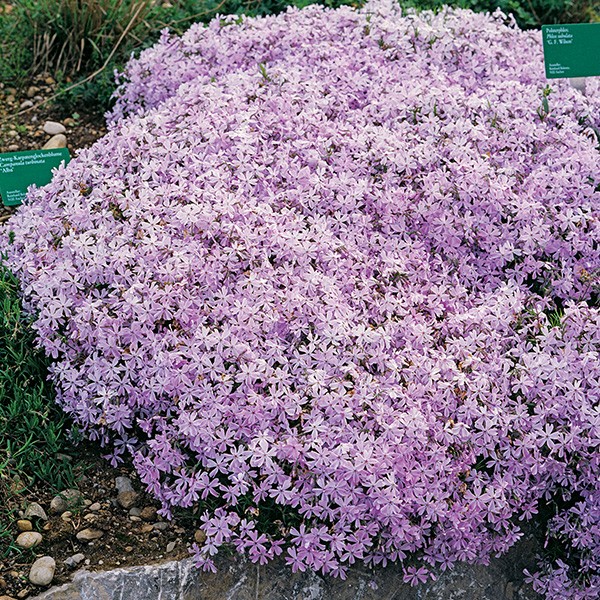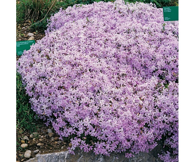 Odmiana o bardzo intensywnym wzroście! Floks szydlasty G.F. Wilson (Phlox subulata) w szybkim czasie tworzy poduchy zimozielonych liści, na mniejszych powierzchniach może nawet zastąpić trawnik. Wiosną obsypuje się setkami kwiatów. Zdobi ogrody skalne i skarpy.