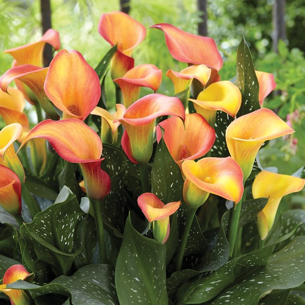 Kalla Morning Sun to odmiana należąca do nowej grupy wyjątkowo dekoracyjnych i chętnie wykorzystywanych we współczesnej florystyce roślin. Jej kwiaty zachwycają dwubarwną kolorystyką, a wraz z rozkwitem nabierają coraz bardziej intensywnego, pomarańczowo-czerwonego odcienia, co sprawia, że wyglądają jak żywy, zmieniający się ogień. Kalla kwitnie długo i bardzo obficie, a jej trwałe kwiatostany doskonale prezentują się zarówno w ogrodzie, jak i w doniczkach na tarasach czy balkonach. Dodatkowo jest świetnym wyborem do bukietów, ponieważ w wazonie utrzymuje świeżość nawet ponad 10 dni, wprowadzając do wnętrza energię i egzotyczny charakter.