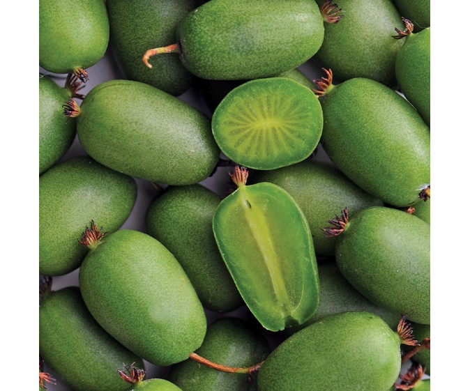 Aktinidia Vitikiwi® to wyjątkowo atrakcyjna i bardzo plenna odmiana, idealna do uprawy w ogrodach przydomowych. Zawiązuje owoce bez zapylenia, dzięki czemu nie wymaga sadzenia roślin zapylających, a owocowanie rozpoczyna już w 2. roku po posadzeniu. Owoce są smaczne, zwykle beznasienne, o długości 2,5–3,5 cm i szerokości 1,5–2,5 cm, dojrzewają w październiku i nadają się do spożycia razem ze skórką. Odmiana charakteryzuje się wysoką mrozoodpornością do –26°C. Ze względu na silny wzrost pnący wymaga stosowania solidnych podpór. Idealny wybór dla miłośników zdrowych, egzotycznych owoców z własnego ogrodu.