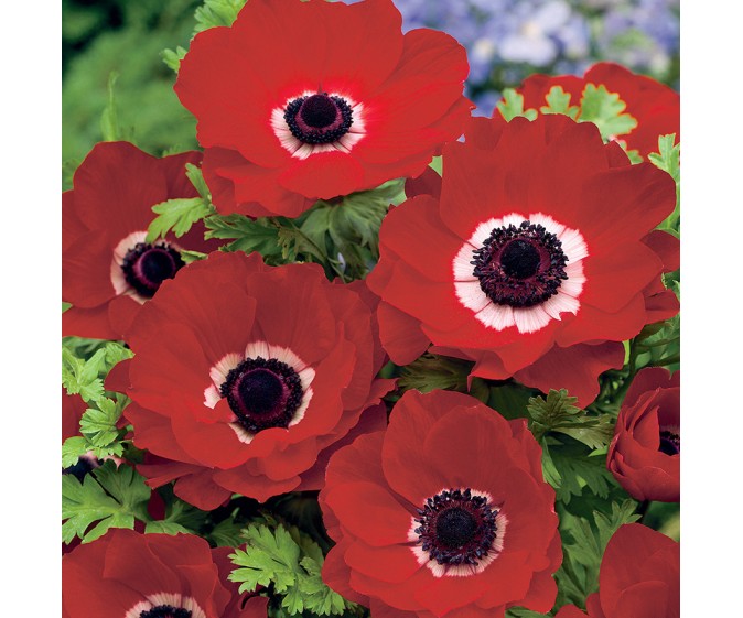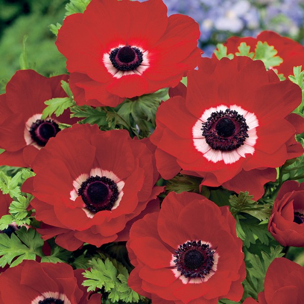 Zawilec wieńcowy Hollandia (Anemone coronaria) to efektowna odmiana o intensywnie czerwonych kwiatach z wyraźnym, ciemnym środkiem, która pięknie ożywia wiosenne rabaty ogrodowe. Doskonale nadaje się do sadzenia w grupach, na obwódkach oraz w pojemnikach, gdzie tworzy wyrazisty akcent kolorystyczny. Odmiana Hollandia jest również bardzo ceniona jako kwiat cięty. Zrywana w fazie pękającego pąka zachowuje świeżość w wazonie przez 7–10 dni, dzięki czemu świetnie sprawdza się w bukietach i kompozycjach florystycznych. Przed sadzeniem bulwki warto namoczyć w wodzie, co przyspiesza wschody i zapewnia obfitsze kwitnienie.