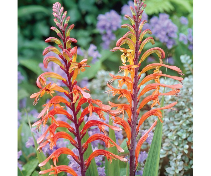 Chasmante Saturnus (Chasmanthe floribunda) to roślina, która przyciąga wzrok niezwykłą formą i spektakularnym kwitnieniem. Tworzy długie, smukłe kwiatostany w kształcie kolby, osiągające nawet do 30 cm długości, obsypane licznymi, rurkowatymi kwiatami. Na jednym pędzie może rozwinąć się ich aż do czterdziestu, tworząc efektowną, dynamiczną kaskadę barw. Roślina prezentuje się wyjątkowo dekoracyjnie na słonecznych rabatach, gdzie nadaje kompozycjom egzotycznego charakteru, a także w pojemnikach, stanowiąc oryginalną ozdobę tarasów i balkonów. Chasmante Saturnus to doskonały wybór dla miłośników niebanalnych roślin, które wyróżniają się formą i nadają ogrodowi wyjątkowego, południowego klimatu.