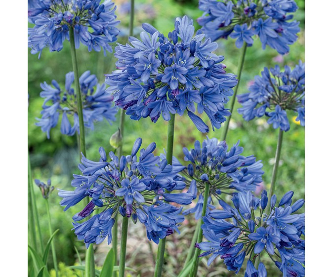 Agapanthus africanus to niezwykle dekoracyjna roślina o pięknych, błękitnych kwiatostanach, które wspaniale kontrastują z ciemnozielonymi, mieczowatymi liśćmi. Dzięki efektownemu pokrojowi i dużym kwiatom agapant świetnie prezentuje się w donicach na balkonach i tarasach, tworząc elegancką, wakacyjną aranżację. Roślina ma kępiasty, lekko wzniesiony wzrost i dobrze znosi uprawę pojemnikową.