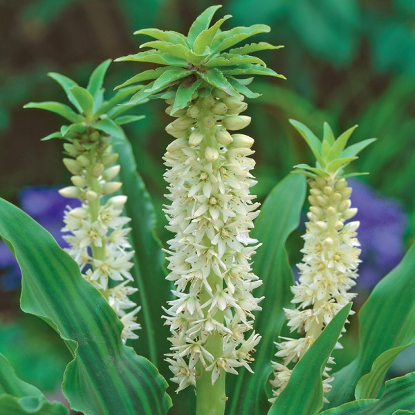 - Zimowanie: eukomis jesienny biały nie zimuje w gruncie. Jesienią wykopuje się cebule, podsusza i zimą przechowuje w piwnicy w temperaturze 6-8 ºC. Eukomis można również posadzić zimą w doniczce i trzymać w chłodnym pomieszczeniu na parapecie aż do wiosny, a następnie z bryłą ziemi przesadzić do ogrodu.