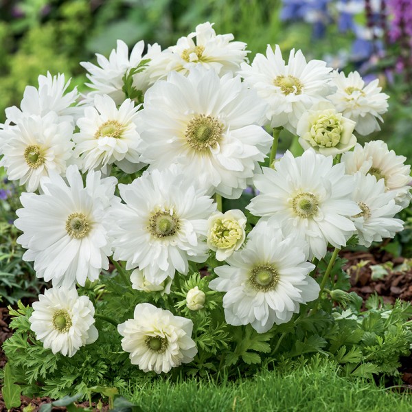 Zawilec wieńcowy Mount Everest to niezwykle delikatna i elegancka odmiana, która zachwyca subtelną kolorystyką oraz szlachetną formą kwiatów. Tworzy przepiękne, białokremowe, półpełne kwiaty z charakterystycznym zielonym środkiem wypełnionym zielonymi i ciemnozielonymi pręcikami. Ich lekkość i świeżość sprawiają, że roślina prezentuje się wyjątkowo naturalnie i harmonijnie, wnosząc do ogrodu nutę klasycznej elegancji. Zawilec Mount Everest to odmiana o wszechstronnym zastosowaniu – pięknie prezentuje się w ogrodzie, a także doskonale sprawdza się jako kwiat cięty, dodając bukietom lekkości, świeżości i elegancji.