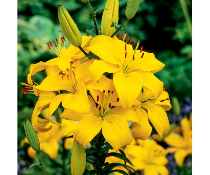 Lilia azjatycka Lentella (Lilium) to niezwykle radosna i wyrazista odmiana, która rozjaśnia ogród intensywnie żółtymi, słonecznymi kwiatami. Jej barwa przyciąga wzrok z daleka i wprowadza na rabaty energię oraz letni charakter. Kwiaty są trwałe i eleganckie, dzięki czemu odmiana ta doskonale sprawdza się także jako kwiat cięty, długo zachowując świeżość w wazonie. Najlepiej prezentuje się posadzona na drugim planie rabat, gdzie tworzy jasne, świetliste tło dla innych roślin. Dobrze zimuje w gruncie, nie wymaga wykopywania cebul, a przy słonecznym stanowisku i przepuszczalnej glebie odwdzięcza się obfitym, efektownym kwitnieniem.