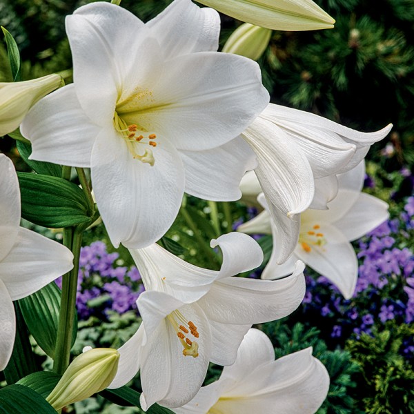 Lilia trąbkowa White Heaven to odmiana, która urzeka czystą, śnieżnobiałą barwą oraz dużymi, eleganckimi kwiatami o charakterystycznym, trąbkowatym kształcie. Kwiaty początkowo wznoszą się do góry, tworząc efektowną, majestatyczną koronę nad rośliną, a wraz z rozwojem pąków stają się jeszcze bardziej okazałe. Już w pierwszym sezonie White Heaven osiąga wysokość powyżej 1 metra, a w kolejnych latach może dorastać nawet do 1,5m, co czyni ją doskonałym wyborem na tył rabat i jako soliter w ogrodzie. Roślina wyróżnia się bardzo intensywnym, pięknym zapachem, który przyciąga pszczoły i motyle, a przy tym jest niezawodna i łatwa w uprawie, co sprawia, że jest chętnie wybierana przez zarówno początkujących, jak i doświadczonych ogrodników.