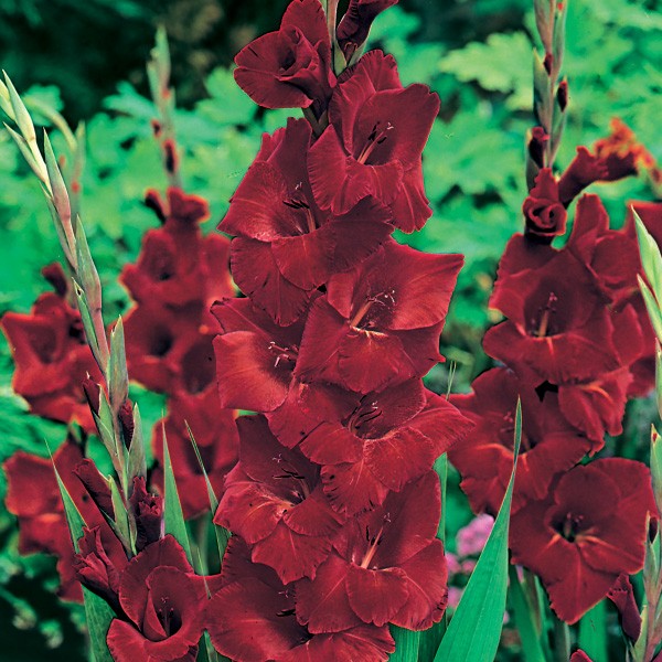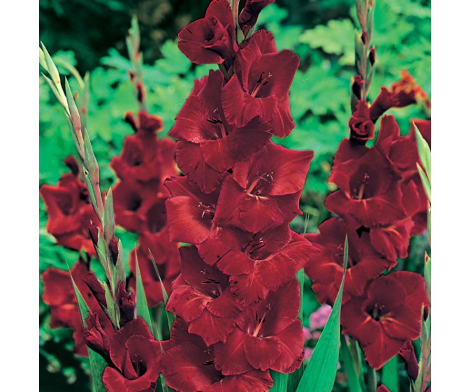 Mieczyk Oscar (Gladiolus) to przepiękna odmiana o głębokim, bordowym kolorze i aksamitnym wyglądzie kwiatów, która wprowadza do ogrodu elegancję i wyrazisty akcent. Dzięki efektownym, wysokim kwiatostanom doskonale prezentuje się w nasadzeniach grupowych na rabatach, tworząc piękne, dekoracyjne tło i wspaniałe uzupełnienie letnich kompozycji. Odmiana Oscar jest również niezastąpiona jako kwiat cięty – w wazonie utrzymuje świeżość nawet do dwóch tygodni, dlatego jest chętnie wykorzystywana w bukietach i dekoracjach wnętrz. Mieczyk kwitnie przez całe lato, zapewniając długotrwały efekt dekoracyjny i ciesząc oko przez wiele tygodni.