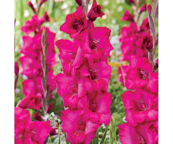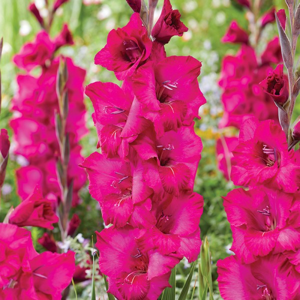 Mieczyk Natan (Gladiolus) to wyjątkowo dekoracyjna odmiana, która zachwyca długimi, smukłymi kwiatostanami w intensywnym różowym kolorze. Dzięki efektownym kwiatom doskonale prezentuje się zarówno w nasadzeniach grupowych w ogrodzie, jak i w roli rośliny ciętej. W wazonie kwiaty Natan utrzymują świeżość nawet do dwóch tygodni, co czyni je znakomitym wyborem do bukietów i dekoracji wnętrz. Mieczyk kwitnie przez całe lato, tworząc w ogrodzie długotrwały, kolorowy akcent i piękną, wyrazistą dekorację.
