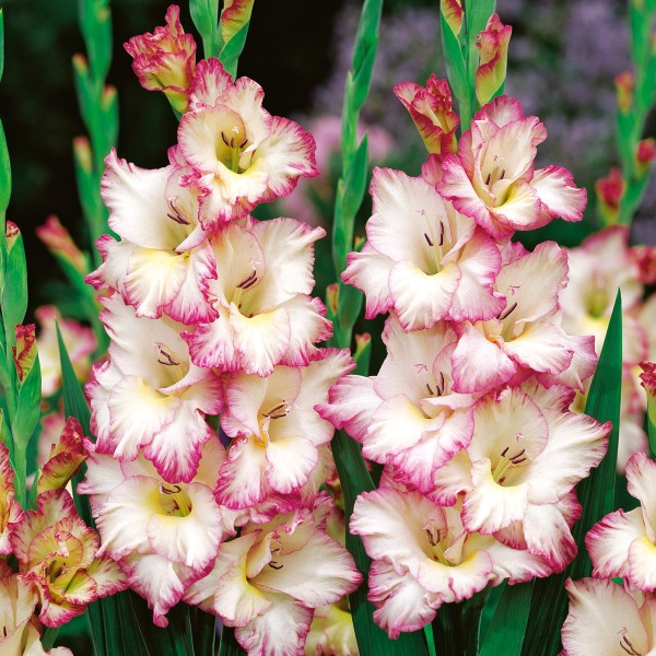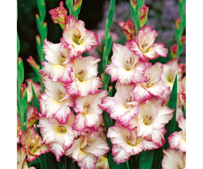 Mieczyk Priscilla (Gladiolus) to imponująca odmiana o dwubarwnych kwiatach, która przyciąga wzrok swoim efektownym, kontrastowym ubarwieniem. Dzięki pięknym, długim kwiatostanom doskonale prezentuje się w nasadzeniach grupowych w przydomowym ogrodzie, tworząc elegancki i wyrazisty akcent kolorystyczny. Odmiana Priscilla jest również świetnym wyborem na kwiat cięty – w wazonie utrzymuje świeżość nawet do dwóch tygodni, dzięki czemu jest chętnie wykorzystywana w bukietach i dekoracjach wnętrz. Mieczyk kwitnie przez całe lato, zapewniając długotrwały efekt dekoracyjny i ciesząc oko przez wiele tygodni.