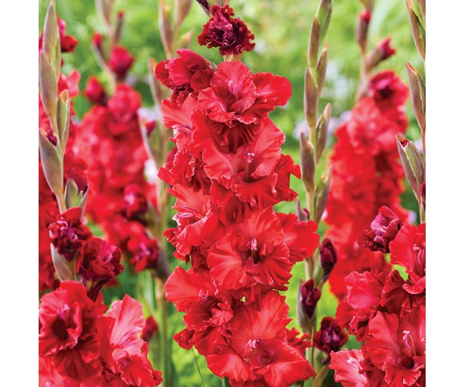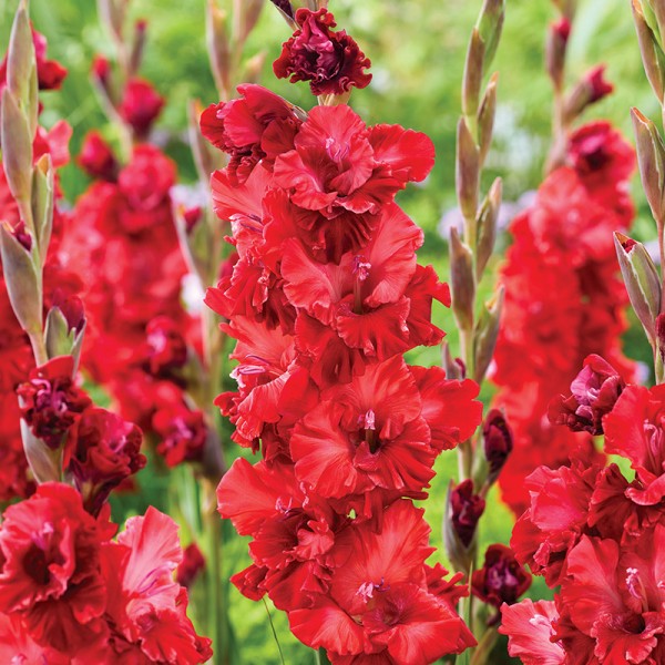 Mieczyk wielkokwiatowy Velvet Raspberry (Gladiolus) to wyrazista odmiana, która wprowadza do ogrodu luksusowy i nowoczesny akcent. Jej zmysłowe, głębokie kwiaty o aksamitnym, lekko przydymionym malinowym odcieniu rozwijają się na wysokich, prostych pędach, tworząc elegancką, pionową linię i nadając rabatom wyrafinowany charakter. Szerokie, mięsiste i delikatnie falowane płatki sprawiają, że każdy kwiat wygląda pełnie i efektownie. Kwiaty otwierają się stopniowo od dołu ku górze pędu, zapewniając długotrwałą dekoracyjność przez całe lato. Jest idealnym wyborem na kwiat cięty – efektowny w bukietach i aranżacjach florystycznych. To propozycja dla ogrodników poszukujących eleganckiej, dekoracyjnej i trwałej rośliny, która przynosi spektakularny efekt kolorystyczny w letnich kompozycjach.