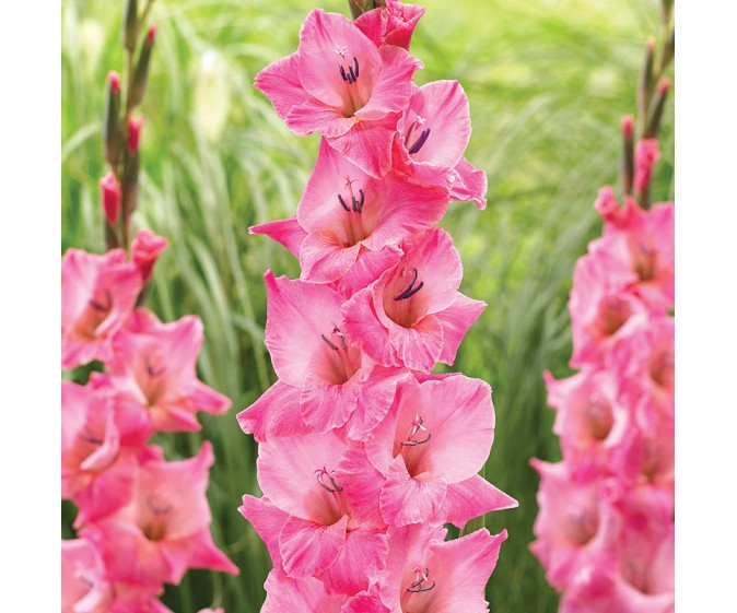 Mieczyk Bartok (Gladiolus) to spektakularna odmiana, która zachwyca oryginalnym, subtelnie cieniowanym kolorem kwiatów. Delikatne różowe i fioletowe odcienie przeplatają się z pastelowymi tonami, a lekko pofalowane brzegi płatków nadają kwiatom elegancką, artystyczną formę. Dzięki trwałym kwiatom mieczyk Bartok świetnie sprawdza się jako kwiat cięty – bukiety zachowują świeżość nawet do 2 tygodni, wprowadzając do wnętrza subtelną, chłodzącą kolorystykę. Odmiana nadaje się zarówno do uprawy na rabatach, jak i w dużych donicach przy wejściu, wprowadzając romantyczny, elegancki akcent. Mieczyki Bartok są odporne na większość chorób i nie blakną na słońcu, co czyni je pewnym wyborem dla każdego ogrodnika.