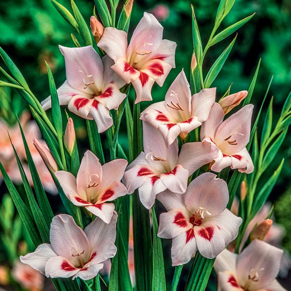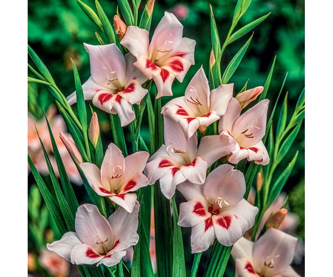 Mieczyk karłowy Elvira (Gladiolus nanus Elvira) to urocza odmiana o delikatnych, jasnoróżowych kwiatach z subtelnym czerwonym środkiem, tworzących lekkie, lejkowate kwiatostany. Niska i kompaktowa forma sprawia, że świetnie nadaje się na rabaty, do pojemników oraz na balkony i tarasy. Mieczyk Elvira jest nie tylko atrakcyjny w ogrodzie, ale też doskonały jako kwiat cięty – długo zachowuje świeżość w wazonie, idealny do letnich bukietów i kompozycji florystycznych. Roślina preferuje stanowiska słoneczne oraz żyzną, dobrze przepuszczalną glebę i jest łatwa w uprawie, dzięki czemu polecana jest zarówno początkującym, jak i doświadczonym ogrodnikom.