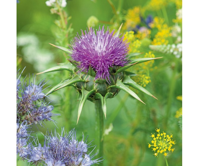 Ortopest plamisty (Silybum marianum) to roślina, która łączy w sobie walory dekoracyjne i zdrowotne. Jego pięknie ubarwione liście i okazałe kwiaty przyciągają wzrok i zwabiają pszczoły, czyniąc ogród miejscem pełnym życia i koloru. W krótkim czasie osiąga imponującą wysokość, zdobiąc przestrzeń ogrodową aż do jesieni. Roślina jest również ceniona ze względu na wartości prozdrowotne – jej nasiona zawierają sylimarynę, związek wspierający regenerację i prawidłową pracę wątroby. Dzięki temu ortopest plamisty jest nie tylko efektowną ozdobą, ale również naturalnym wsparciem dla zdrowia.