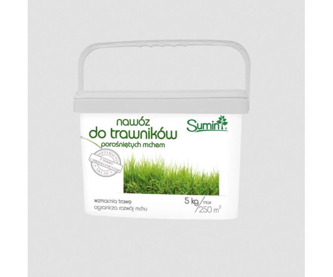 Polecamy wysokiej jakości specjalistyczny nawóz SUMIN OPTYMALNY SKŁAD do pielęgnacji trawników porośniętych mchem. Dzięki wysokiej zawartości azotu i potasu stymuluje trawę do intensywnego krzewienia, wzmacniając darń i eliminując problem mchu oraz chwastów.